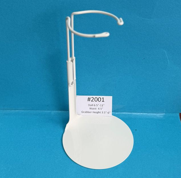The n2001 has a 3" base and a fully coated doll grabber that extends in height from 3 1/2" - 5 3/4". This stand suits dolls from 6 1/2" - 11" and with a waist of approx 4 1/2"