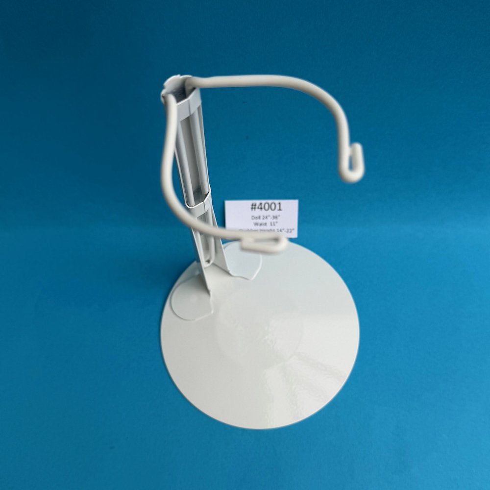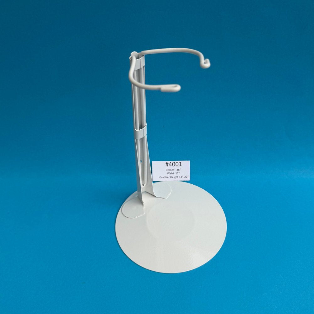 The n4001 has an 8" base and a fully coated doll grabber that extends in height from 14" - 22". This stand suits dolls from 24" - 36" and with a waist of approx 11".